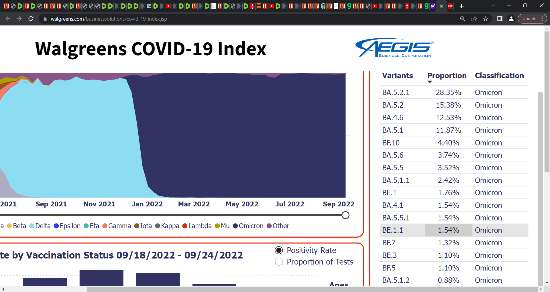 We also have BA.4.6 and BA.2.75 clades rising and this will make the fraud worthless bivalent Pfizer (based on legacy Wuhan and BA4 & BA.5 clades) shot even more worthless; Walgreens data below