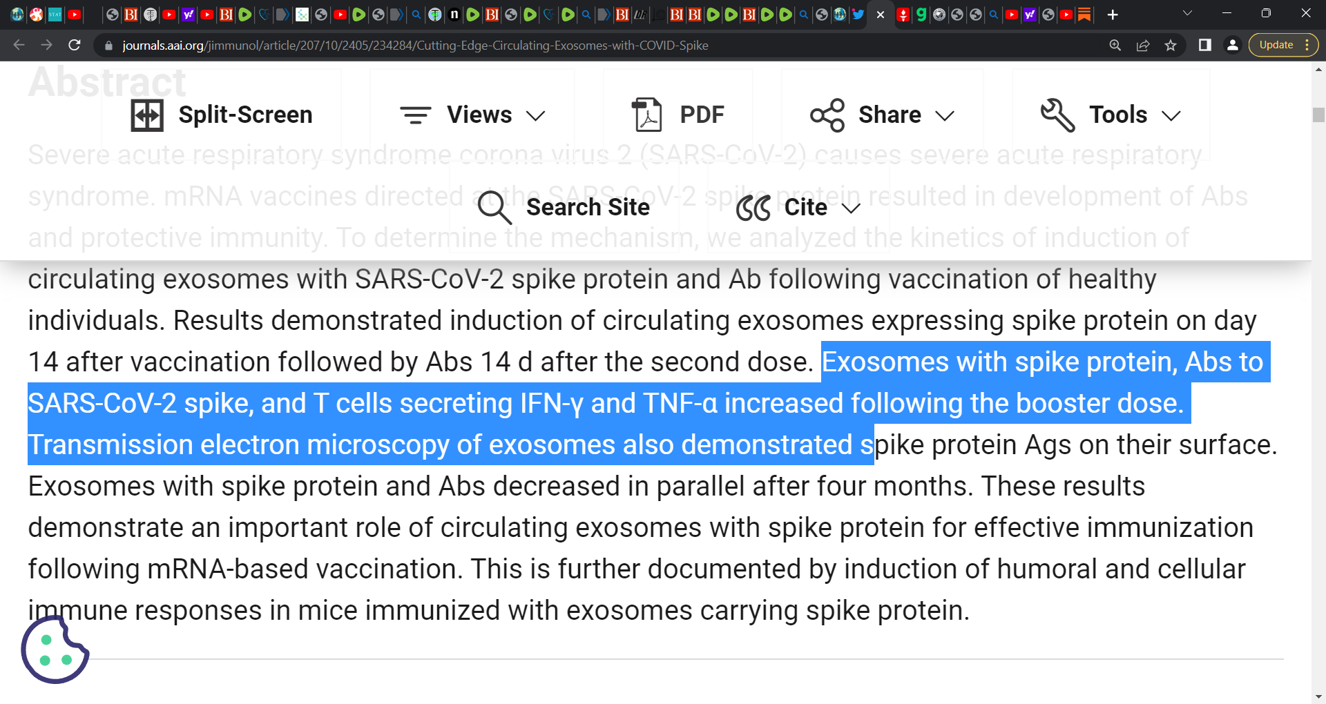 Spike protein longevity: more evidence the mRNA technology injection induced spike protein is long-lasting in the body; "Circulating Exosomes with COVID Spike Protein up to 4 months post vaccine"