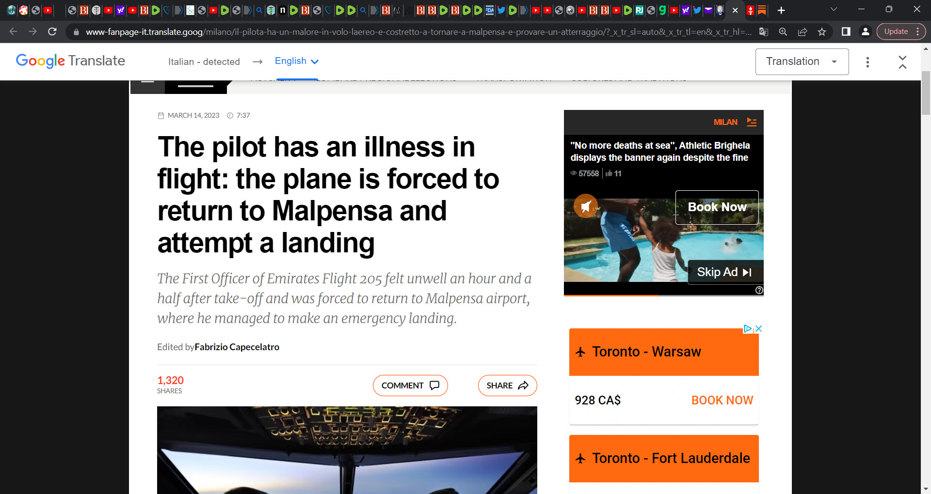 EMIRATES flight WARNING: A plane or two will fall from the sky; 'The First Officer of Emirates Flight 205 felt unwell an hour and a half after take-off and was forced to return to Malpensa airport'