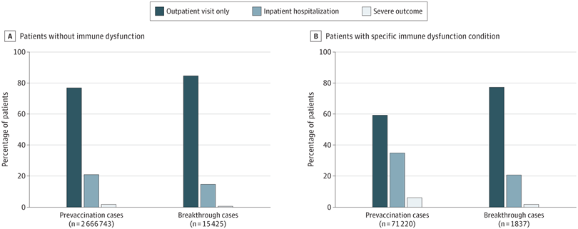 You see in the panel for those without immune dysfunction, the percentages for both outpatient visits and inpatient hospitalization are approx. the same.