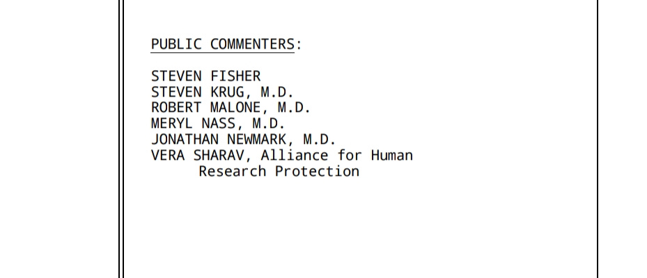 Robert Malone agrees with caller #1, below, but wants “dose pairing”: “I presumed he (Malone) meant pairing the dose of Anthrax with another vaccine, which is even scarier” (comment from a Biologist who has reviewed these Minutes). The Minutes have been authenticated by a current Federal Government employee.