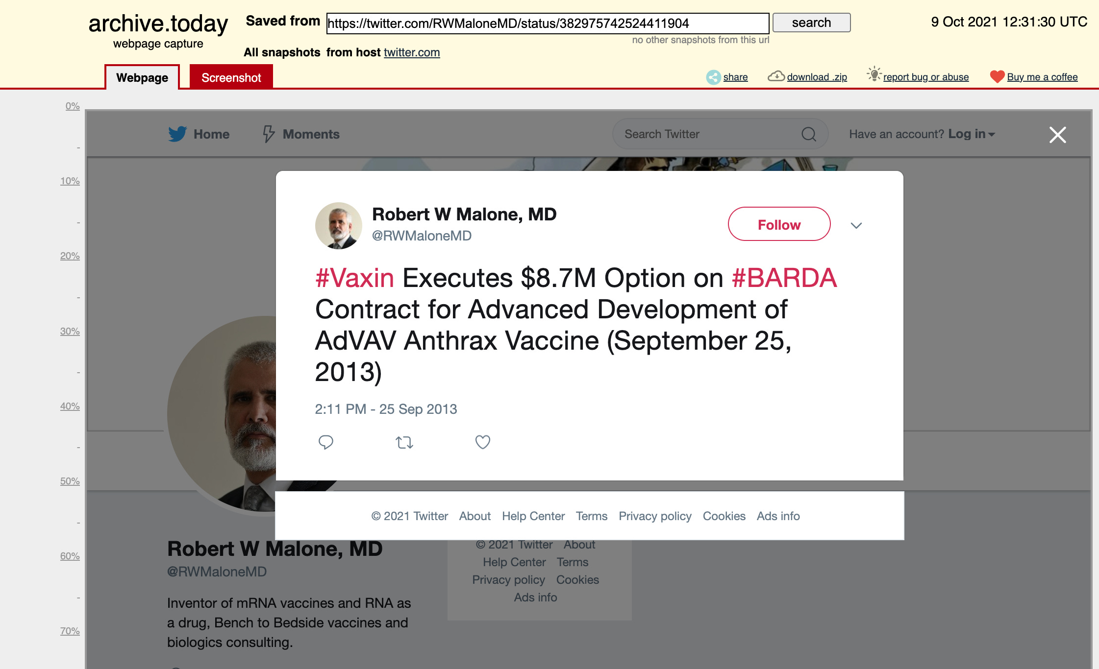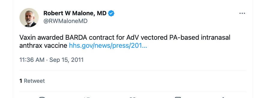 Was Malone central to the Anthrax vaccine push back then? As per this stack?