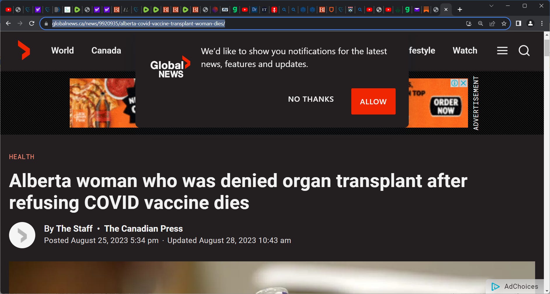 Alberta: did the Alberta government kill Sheila Lewis denying her an organ transplant because she was unvaccinated? What is Danielle Smith doing about this? Did she stand by? She died! Who to blame?