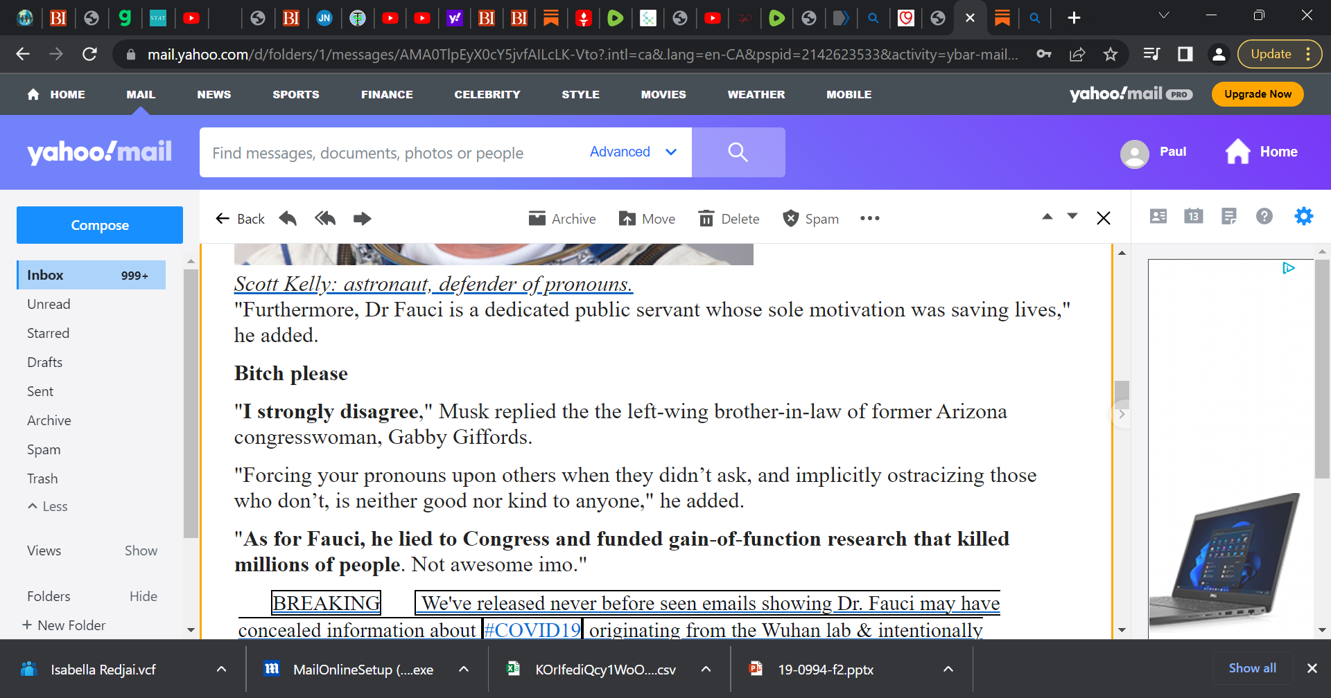 Twitter exchange between Elon Musk and Scott Kelly is priceless! You go Elon; Kelly: "Elon, please don’t mock and promote hate toward #LGBTQ"; Elon: "Bitch please I strongly disagree, as for Fauci,