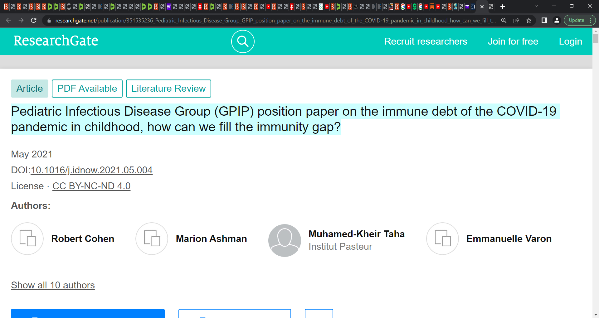 The writers of this paper (Cohen et al.) are non-sensical and illogical in their thinking. They are partly correct in the paper but the assumption that low COVID vaccine uptake can contribute to the ‘immunity debt’ is flat wrong. In fact, this gene injection can and will subvert the normal innate immune training needed in children and which then protects them against a broad range of glycosylated pathogen. Not taking this injection actually is the best most optimal step parents can take. The immunity gap is due no doubt to the lockdowns and school closures and thus limited exposure. The COVID vaccine has failed and no statistical zero risk child must be in receipt of these shots. None. No healthy child has died from COVID post infection. Parents should understand this.
