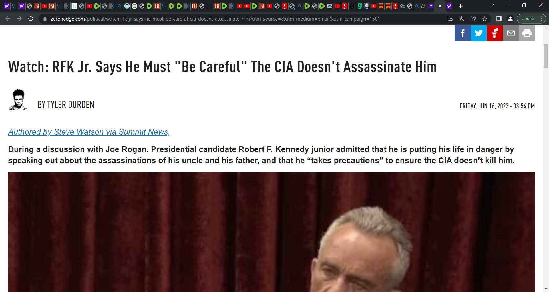 RFK (Bobby Kennedy Jr.) said what? 'RFK Jr. Says He Must "Be Careful" The CIA Doesn't Assassinate Him'...Trump has similar problem with the deepstate, the lunatic media, the RINOs, they want him in