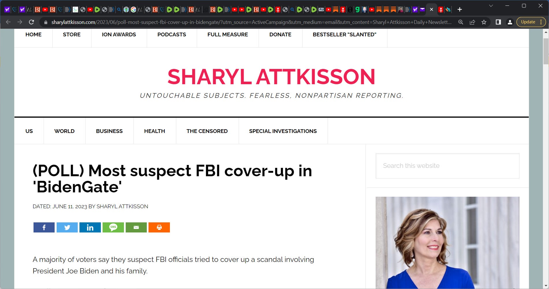 Is the FBI running cover for BidenGate? Hunter & POTUS Biden bribe scheme of $5 million each? Seems so as I try to follow this & SHARYL ATTKISSON is on it: "Most suspect FBI cover-up in 'BidenGate'"