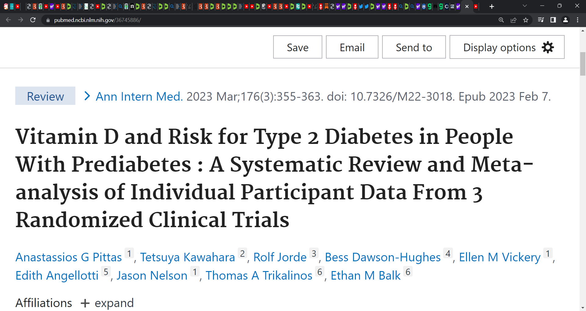 Vitamin D and Risk for Type 2 Diabetes in People With Prediabetes: huge systematic review (using 3 randomized controlled trials) by Pittas et al. showing in adults with prediabetes, vitamin D