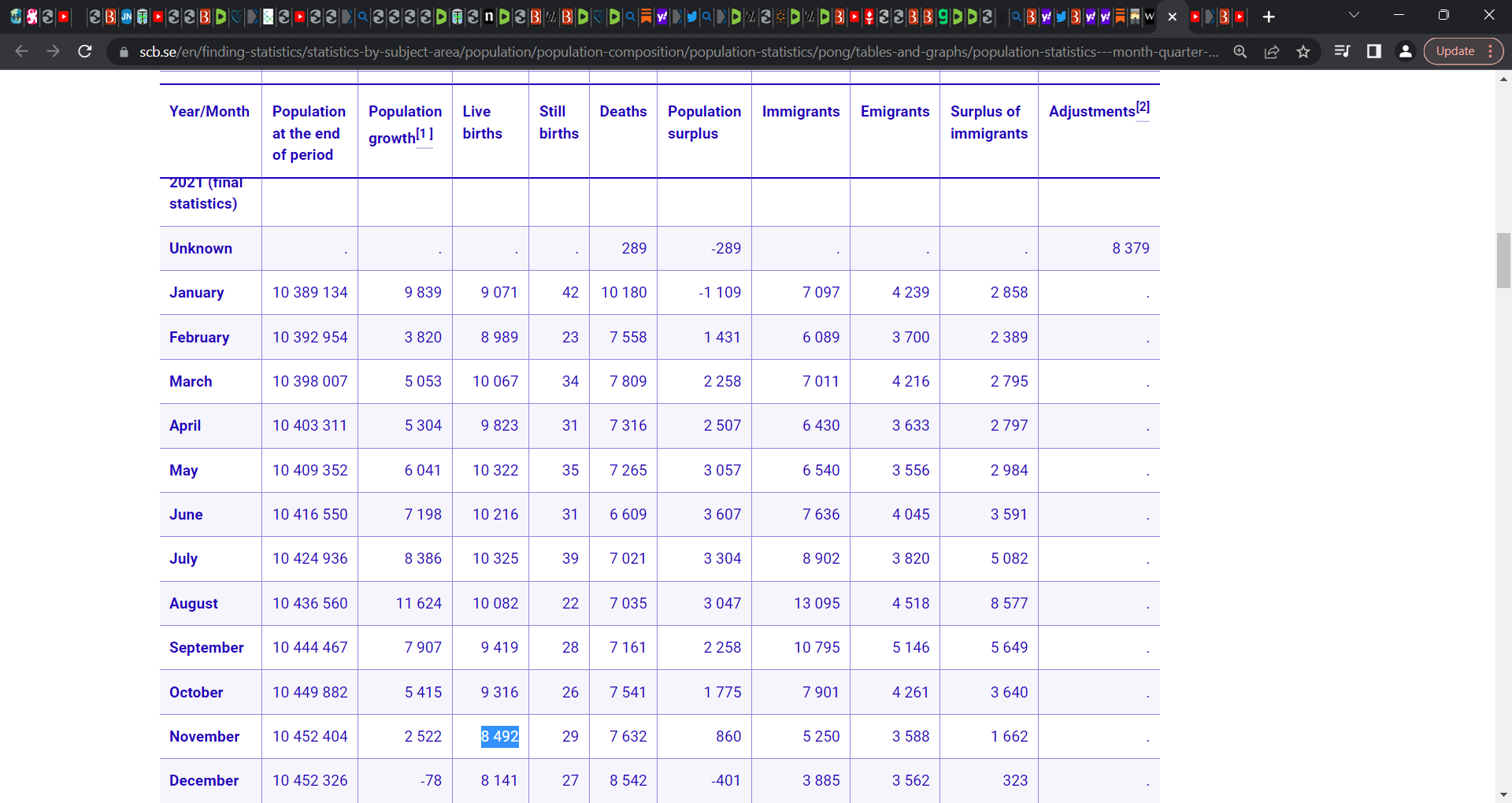 Sweden: What is happening with the live births data (3rd column from left) in Sweden for 2022? You can see decline & we must ask, is this COVID gene injection vaccine related? Is it booster related?
