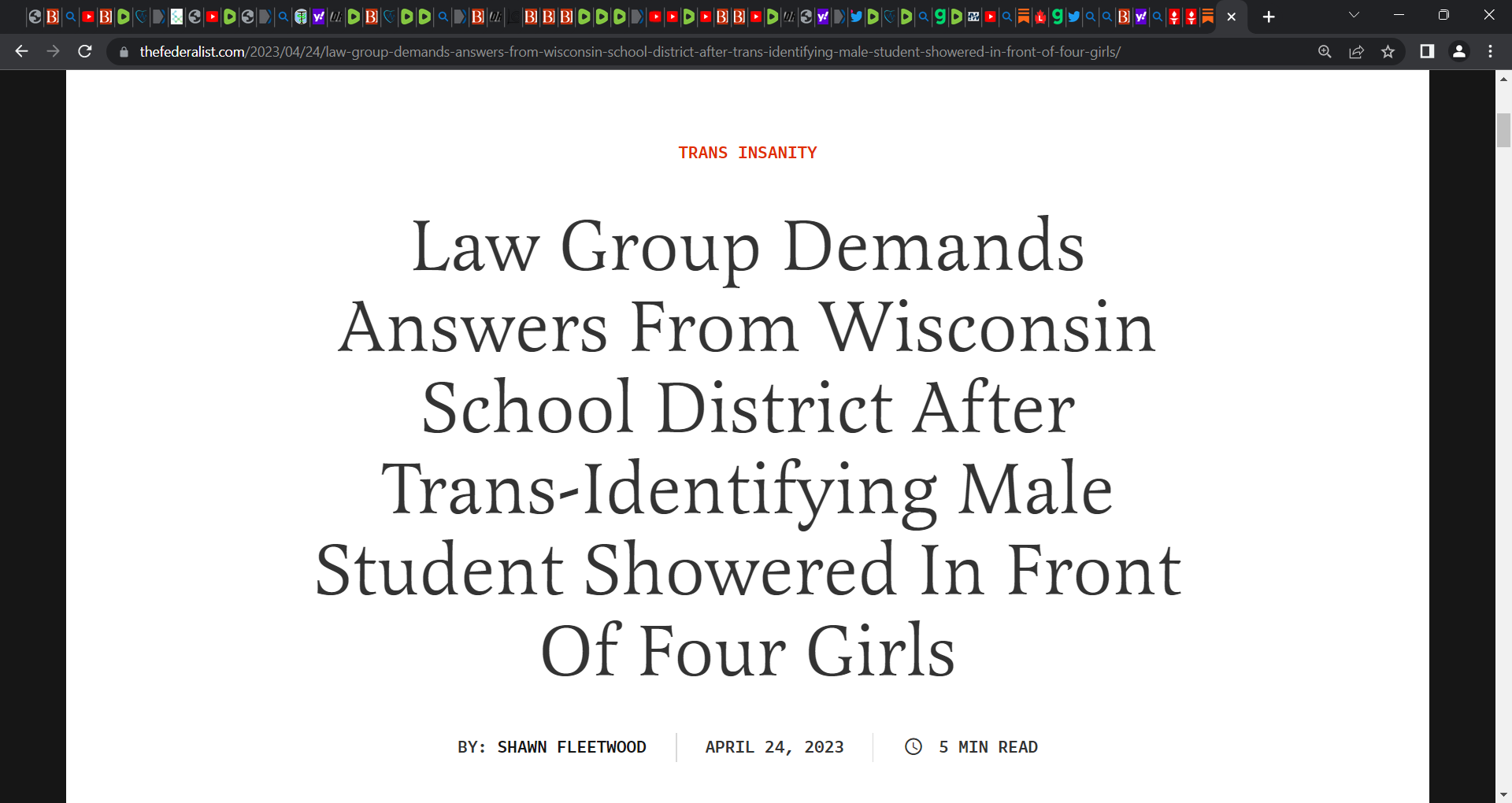 Law Group Demands Answers From Wisconsin School District After Trans-Identifying Male Student Showered In Front Of Four Girls.