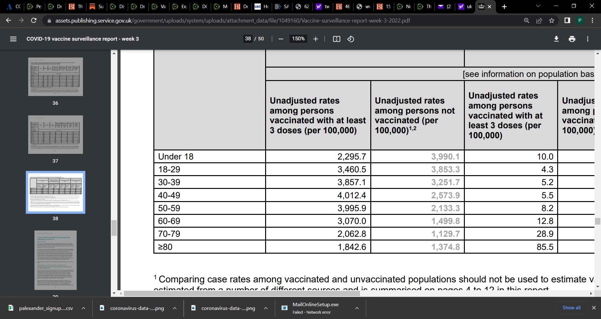 Can you see that across time, as we continued the vaccine program, that the risk of infection in the vaccinated escalates dramatically, using the 40-49 year old group, we see markedly more infection in the recent week 13 vs the past week 3 data. In other words, as time has gone by, the vaccinated are becoming more infected and what we are literally seeing in the infection/case curves is that there are: