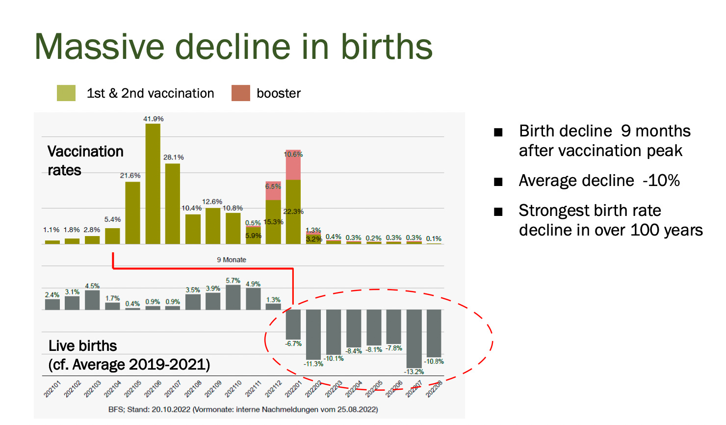“This very alarming signal cannot be explained by Covid-19 infections,” concluded the August 25, 2022 report, which, as in the Swiss reports, saw parallels between huge vaccination campaigns and, nine months later, the start of what one report called a “baby gap.”