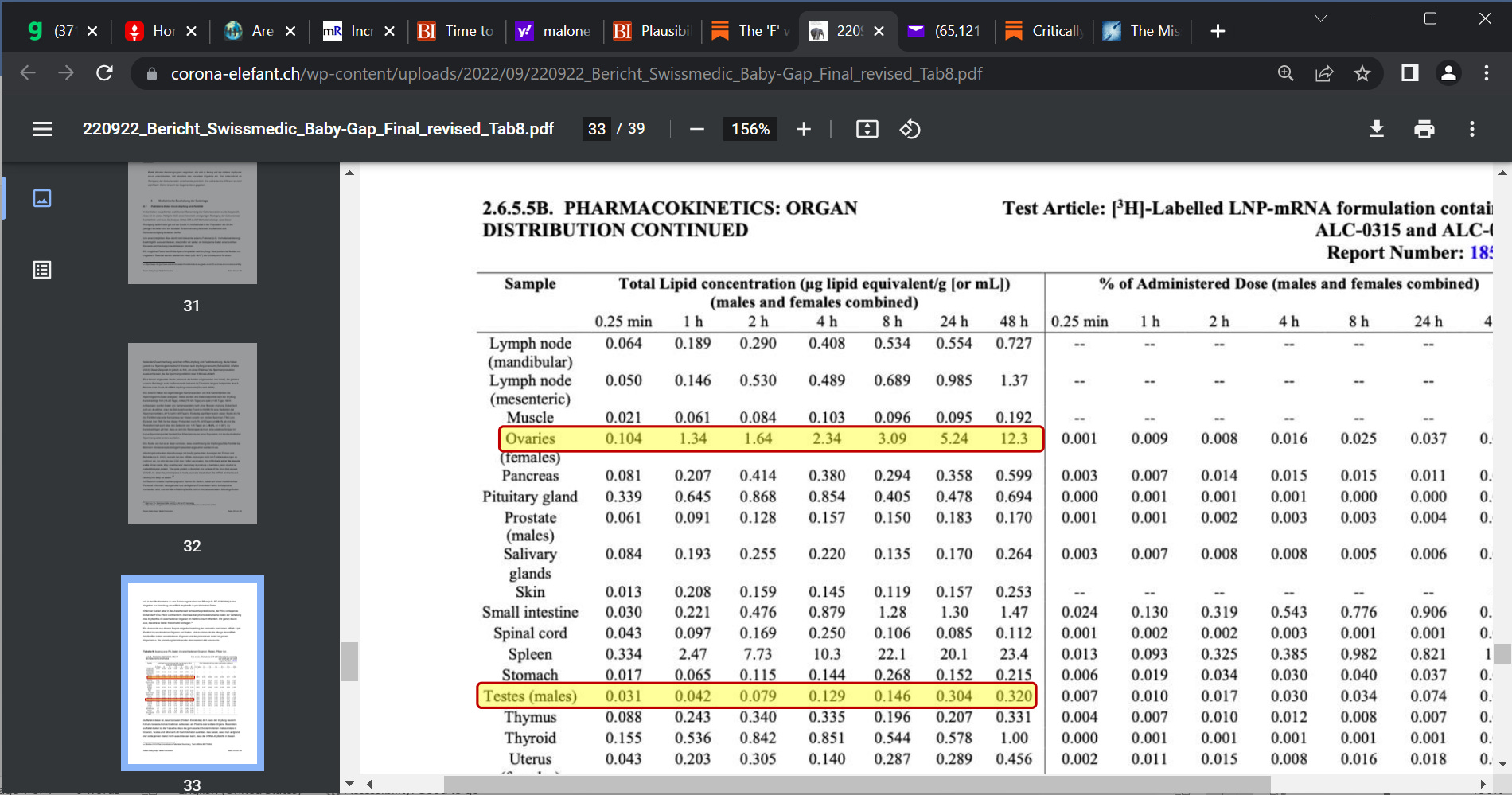 First, never forget the lipid-nano particle biodistribution rat data (Japanese study by Pfizer). What does the bioaccumulation data show in these rats in the ovaries and testis (male and female rats)? Below it shows massive accumulation:
